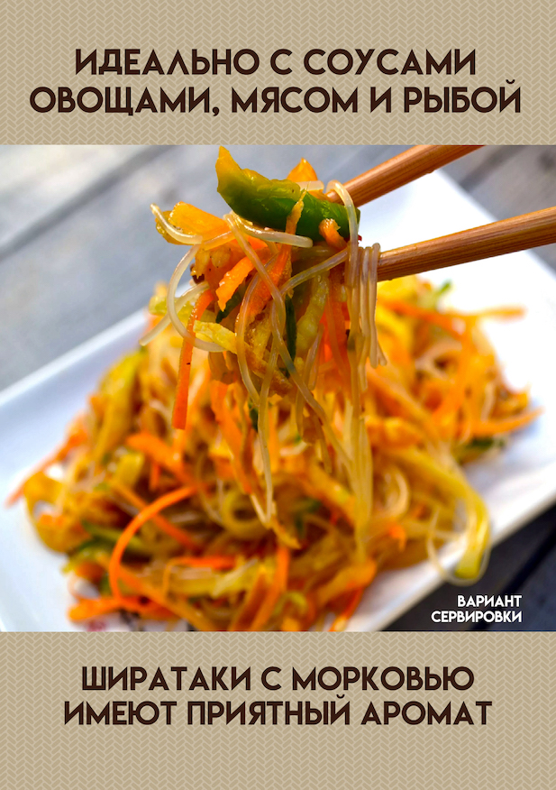 Примечание для последователей Диеты Дюкан: морковь в данном виде ширатаки является добавкой для придания цвета и аромата, а ее количество очень невысоко. Поэтому данный вид ширатаки вполне подходит для белковых дней в том числе.